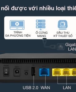 Router có 3 cổng LAN, 1 cổng WAN, 1 cổng USB kết nối được đa dạng hơn để phục vụ nhu cầu giải trí và làm việc.