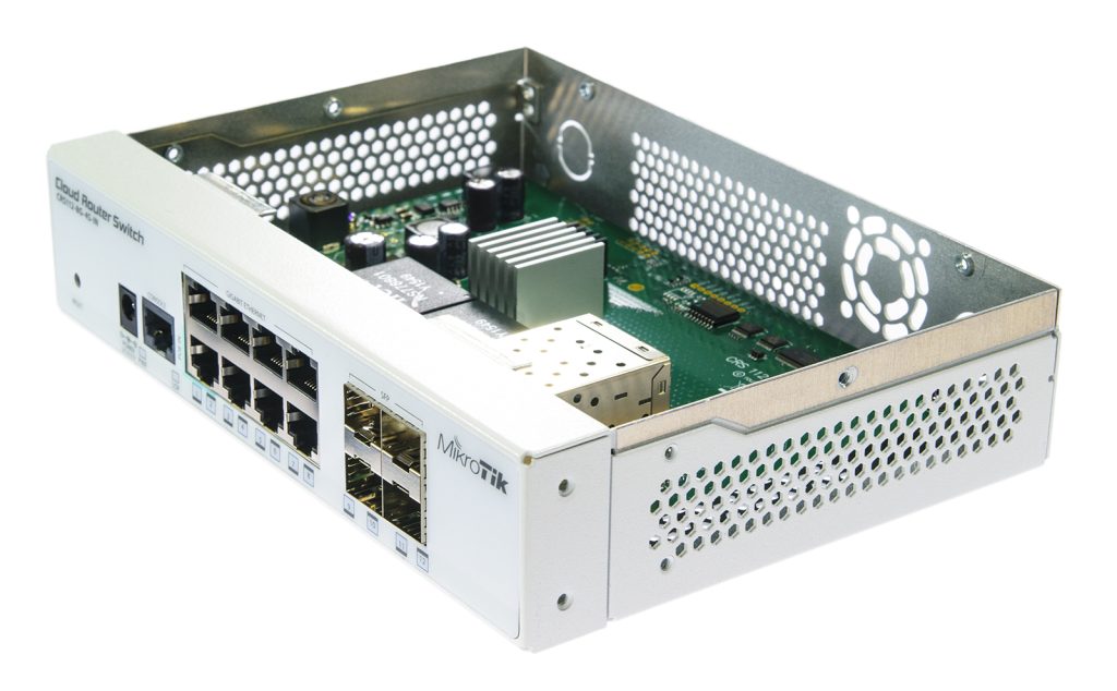 MikroTik CRS112-8G-4S-IN sở hữu thiết kế nhỏ gọn, tối giản chỉ 200x143x44mm. Người dùng có thể đặt thiết bị trên bàn, gắn cố định lên tường hoặc đặt trong các tủ rack mạng, tủ máy chủ các nhân. Mặt trước thiết bị là khu vực bố trí các cổng kết nối, bao gồm: 8 cổng RJ45, 4 cổng quang SFP 1G và 1 cổng Console Port. Với thiết kế nhỏ gọn, MikroTik CRS112-8G-4S-IN được trang bị duy nhất 1 quạt tản nhiệt. Thiết bị hỗ trợ khả năng làm mát thụ động: Không khí bên ngoài đi vào từ các cổng kết nối mặt trước, kéo theo hơi nóng trong khoang máy và loại bỏ thông qua quạt tản nhiệt tại mặt sau. MikroTik CRS112-8G-4S-IN hỗ trợ cấp nguồn đồng thời qua nguồn DC 10-57 V và PoE Passive. Qua đó, người dùng có thể dễ dàng triển khai linh hoạt thiết bị tại từng khu vực hoặc điều kiện nguồn điện.