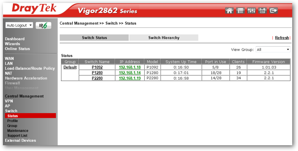 Bạn có thể quản lý tập trung DrayTek VigorSwitch G2100 bằng nhiều cách: Thông qua Switch Management tích hợp trên Router DrayTek, phần mềm VigorConnect, phần mềm VigorACS. Cho phép các bạn có thể giám sát trạng thái, cấu hình từ xa, sao lưu và phục hồi cấu hình, … mà không cần phải truy cập vào từng thiết bị switch để cấu hình.